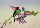 5月13日,江西省鄱阳湖保护区都昌保护监测站工作人员在湖区监测到蓝喉蜂虎6只,这是今夏以来该物种在都昌湖区首次出现。蓝喉蜂虎喜近海低洼处的开阔原野及林地,繁殖期群鸟聚于多沙地带,在鄱阳湖区较为少见。
