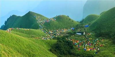 武功山的高山草甸海拔之高,面积之广在世界同纬度名山中都是绝无仅有的。10万亩草甸绵绵于海拔1600多米的高山之巅,穿云入雾,春夏绿油油,秋季金灿灿,冬天白皑皑,游人无需远赴边陲,便可领略北国风光,真可谓“天上草原、人间仙境、北国风光、绿色家园”,被专家称为“奇山伴草甸,天下一绝。