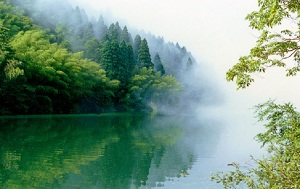 含鄱口 是庐山上最佳观日的地方。 清晨,只见鄱阳湖上晨光熹微,天水一色, 一轮红日射湖而出,金光万道,霎时湖天尽赤,半壁河山成了一幅灿烂绚丽的画卷。 它势如奔马,又宛如游龙,神气活现地横亘在九奇峰和五老峰之间,张着大口似乎要鲸吞鄱阳湖水,因此得名。 含鄱口的奇妙就在于一个“函”字,造成“千里鄱湖一岭函”的气势。