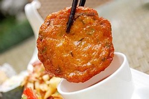 鱼饼的特点是色泽金黄,既有鱼肉炸后的香味,又有大量的汤汁包在鱼饼之中,鲜嫩味美,久食不腻。