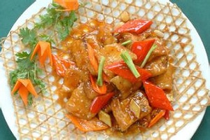 小炒鱼选用鲜草鱼,去掉鱼头鱼尾,批成块状,加以生姜、四季葱、红椒、醋、酱油、水酒等作料烹饪而成。