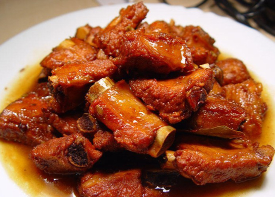 材料:肋排半斤、红酒半碗、料酒2汤勺、生姜、蒜子、酱油、花生油、盐.