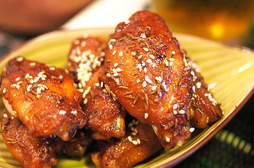 4、加入盐、料酒、生抽、白糖、辣椒粉、孜然粉拌匀鸡翅,腌制半小时以上(密闭冷藏半天更入味);5、锅内涂层薄油,锅热后下入腌好的翅中,小火煎制;