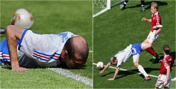 还记得齐达内的“天外飞仙”吗?是的,那个球正是来自于2002年的欧冠决赛,在劳尔和卢西奥相继进球之后,齐达内的这一粒载入足坛史册的致胜球绝杀了“药厂”,让皇马第九次捧起了欧冠冠军的奖杯。然而物极必衰,在俱乐部如日中天的齐达内,却在法国队迎来了“滑铁卢”:那一届堪称是“史上最混乱”的世界杯,法国队的领军人物齐达内竟然在热身赛时被韩国球员弄伤了,之后法国队的战绩急转直下,无奈齐达内在小组赛最后一场比赛仓促复出,但还是无济于事,一次次爬起,又一次次的倒下,那一战,“神一样的男人”齐达内也真正感觉到了什么叫无助,最终,他的法国队蒙受了卫冕冠军惨遭小组淘汰的奇耻大辱。