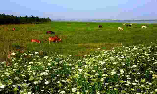 鄱阳湖,中国第一大淡水湖,也是中国第二大湖,位于江西省北部、长江南岸。有70%的水域在江西省九江市境内,其余20%的水域在江西省上饶市境内,10%的水域在江西省南昌市境内。汇集赣江、修河、鄱江(饶河)、信江、抚河等水经九江市湖口县城注入长江。鄱阳湖上承赣、抚、信、饶、修五河之水,下接长江。丰水季节浪涌波腾,浩瀚万顷,水天相连;枯水季节水落滩出,枯水一线,野草丰茂,芦苇丛丛;湖畔峰岭绵延,沙山起伏,沃野千里,候鸟翩飞,牛羊倘佯。美丽富饶的鄱阳湖养育了世代生长居息湖畔的万物生灵。鄱阳湖是世界上最大的鸟类保护区,“鄱阳湖畔鸟天堂,鹬鹳低飞鹤鹭翔;野鸭寻鱼鸥击水,丛丛芦苇雁鹄藏”,每年秋末冬初,有成千上万只候鸟,从俄罗斯西伯利亚、蒙古、日本、朝鲜以及中国东北、西北等地来此越冬。被称为“白鹤世界”,“珍禽王国”。