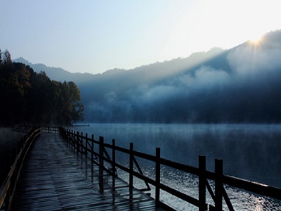 柘林湖风景名胜区位于江西省九江市永修县和武宁县境内,是由亚洲第一大水电土坝拦河工程所在地——柘林镇而得名。为国家级森林公园、国家级重点风景名胜区、省级地质公园。景区总面积425平方公里,其中水域面积308平方公里,平均水深45米,能见度11米,负离子含量为15万个/立方厘米,属国家一级水质一级空气。湖区拥有形态各异、大小不一的岛屿997座,比较著名的有桃花岛,金猴岛,孔雀岛等。其众岛星列,簇簇拥翠的壮观景象,堪称世界奇观。