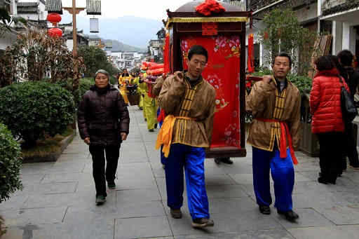 春节的婺源,民俗表演照常十分抢眼。在国家5A级旅游景区--江湾,一场别开生面的婚俗表演,就吸引着众多游人的竞相欣赏。
