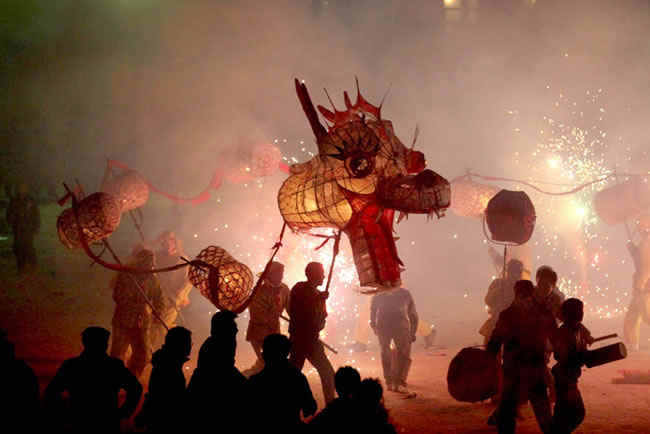 婺源的各个村落都迎板龙灯,在婺源话中,“灯”与“丁”同音,有着祝愿人丁兴旺、庆贺吉祥如意之意,正月十三,是起灯的日子,婺源民间的乡村,都会抬着板龙灯出巡祈福。正月十八是圆灯,这天舞龙灯的方式与其他二日舞的方式不同(正月十三与正月十五)。各个舞龙队会极限发挥,等到龙灯结束后,各自会扛着自己的板凳龙灯往家里跑,谁第一个跑到家谁来年一定添"灯"(即添了)。这一天之后,春节就算过完了,农民们就要做春耕的准备工作了。