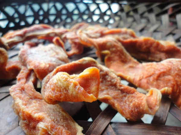 婺源的特色吃食:南瓜枣。现在很少见婺源人做这种传统美食啦!制做方法:老南瓜去平,切条打霜几天拿去蒸熟,再接着去打霜,想要味道更甜可以多打霜一段时间。吃法:切成小块,加糯米粉、芝麻、盐、些许辣椒搅拌一起蒸熟即可食用。
