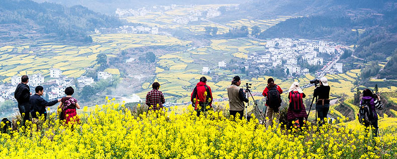 江岭在婺源视为最好的赏花地,也被评为油菜花盛开最美的地方。你站在高处,千亩油菜花海一览无遗。