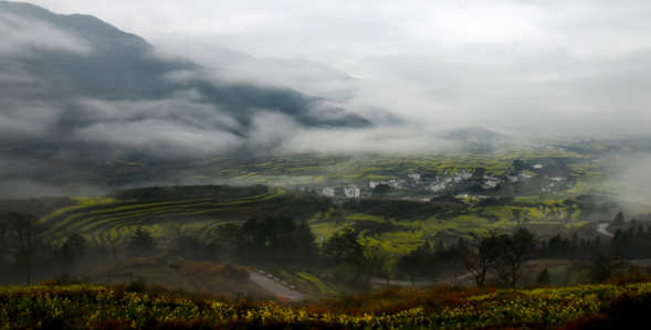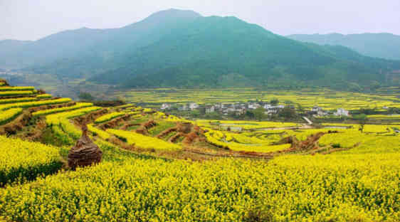 江岭在婺源视为最好的赏花地,也被评为油菜花盛开最美的地方。你站在高处,千亩油菜花海一览无遗,漫山遍野的油菜花呈梯田状,从山顶铺散下来,如黄河之水汹涌,如黄绸缎般的在田间飘逸荡漾,感受到了天人合一的圣境,让我心飞翔,尽情释放,仿佛来到了人间天堂。