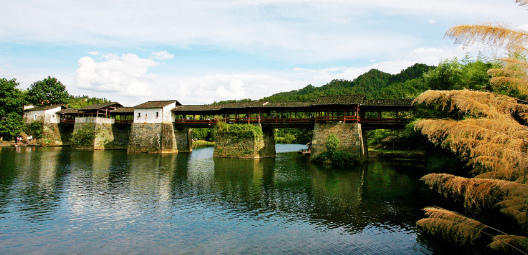婺源上千年隶属古徽州,她的文化、建筑、民俗、菜系等都属徽州范畴。从古村落看,西递、宏村已成为世界级文化遗产,成为皖南古村落的代表。婺源的任何村落,山水、田园难以代表自己的特点,而彩虹桥在整个徽州,乃至中国仅此一桥,她是徽州文化不可缺少的组成部分,成为婺源的象征,是婺源标志性的建筑。木质部分设计体现哲理思想——越简单实用,越容易传承延续。