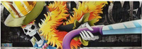 (用亚当宝树制造)五年前误闯鬼魂岛Thriller Bark被王下七武海之一的月光·摩利亚夺去了影子,移植至赫古巴库所改造的武士僵尸“斩龙武士 龙马”的身上,,在偶然中发现盐能够净化僵尸,为了抢回自己的影子,在岛上大量净化僵尸士兵,让Thriller Bark陷入一片恐慌,结果不敌装有自己影子的僵尸龙马,大败而归,直到索隆战胜龙马,影子才终于回到他的脚下,鬼魂岛战役结束后,从鲁夫口中得知伙伴拉布现在平安无事的消息,为了履行和拉布的约定,以音乐家身分正式加入草帽海贼团,他所持有的“音贝”保存了50年前伙伴们临终之际的合奏曲“宾克斯的酒”,现在则存放于头盖骨里。在香波地群岛被王下七武海之一的暴君 巴索罗谬·大熊的神秘能力传送到别处,目前下落不明。